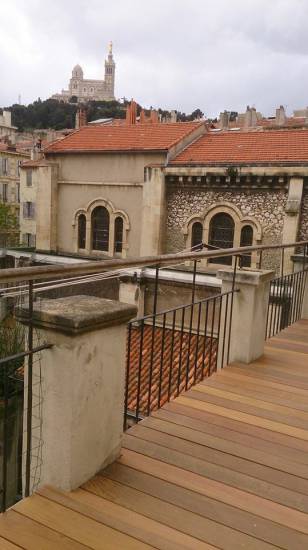 Après avoir effectué la dépose de l'ancienne terrasse, PARQUETEUR13 a assurer la pose d'une terrasse en lame Ipé rue de Rome 13006