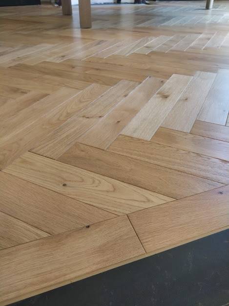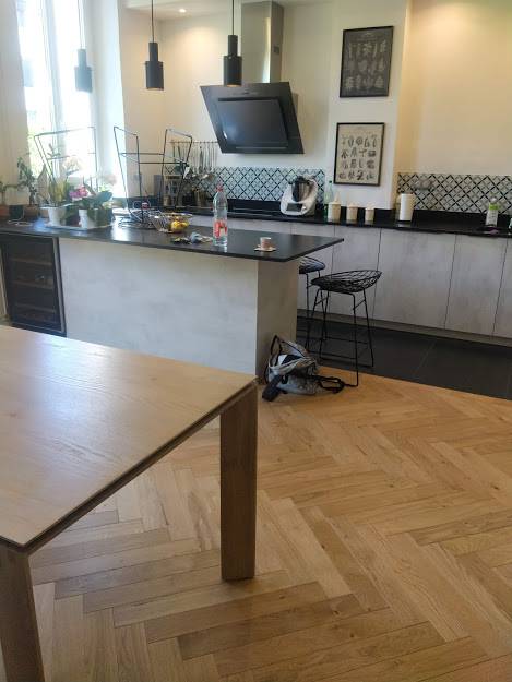 La sélection du parquet : Nous recommandons l’utilisation d’un parquet chêne massif traditionnel pour ce type de pose, qui demande une rigueur et une technicité accrues.