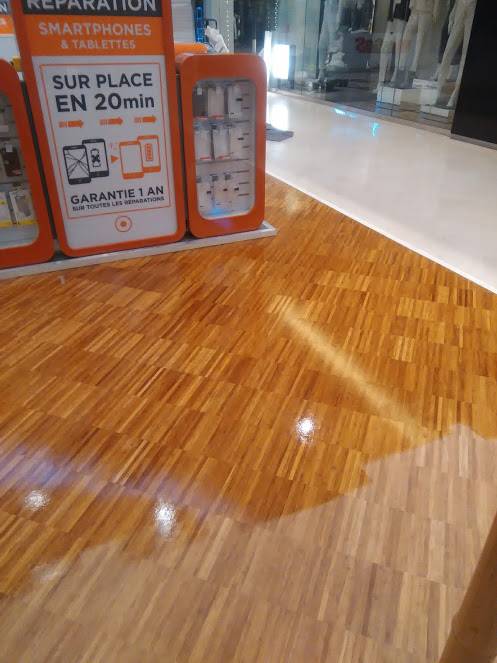 Parqueteur 13 intervient actuellement sur le centre commercial Terrasse du Port 13002 Marseille en restaurant le parquet bambou.